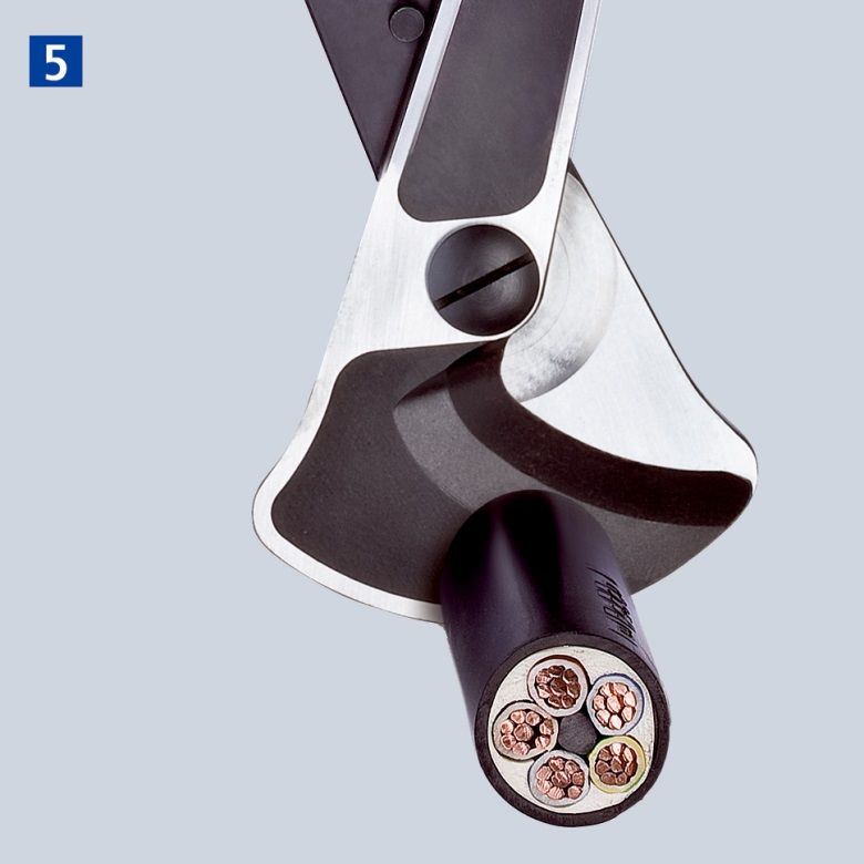 Kabelové nůžky s nastavitelnými a výkyvnými výsuvnými rameny.