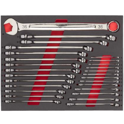 Sada kombinovaných klíčů v pěnové vložce  MILWAUKEE , 27 ks, velikost 6-36 mm, určeno pro dílenské vozíky a skříně MILWAUKEE.