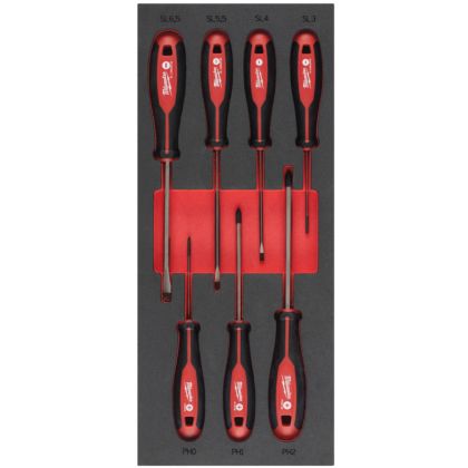 Pěnová vložka se sadou šroubováků  MILWAUKEE TRI-LOBE SL/PH , 7 ks, určeno pro dílenské vozíky a skříně MILWAUKEE.