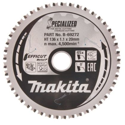Pilové kotouče MAKITA Efficut TCT mají speciální provedení pro řezání kovu s aku pilami. Díky upravenému tvaru a broušení zubů je řez výrazně rychlejší a navíc umožňuje více než 50% úsporu energie akumulátoru.