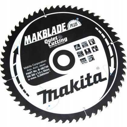 Pilové kotouče MAKITA MAKBLADE PLUS pro pokosové a stolní pily mají jedinečné patentovanou technologii. Tyto kotouče jsou vyvinuty k pohlcení vibrací a velmi tichému chodu. Mají vlastnosti zlepšovat pracovní prostředí, životnost kotouče a spolehlivost celého zařízení. Kotouč s menšími vibracemi zajistí přesnější vedení řezu a také snižuje házivost. Výsledným efektem je ideální řezná plocha. Také má za důsledek významně delší životnost zubů z karbidu wolframu překračující životnost konvenčních pilových kotoučů s karbidovými hroty. Přesně vyztužené kotouče s plochým ostřím a rovnějším řezem. Povrchová vrstva s velmi malým třením znamená řezání bez námahy a ochranu před korozí.