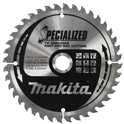 Kotouče se zapuštěnými hroty, nebo „hlubokými zuby“, jsou navrženy tak, aby vyhovovaly pilám MAKITA i jiných výrobců. Jsou to velmi pevné kotouče odolné proti opotřebení. Snadno si poradí se sukovitým dřevem a ani řezání dřeva s hřebíky nebo šrouby jeho zuby nepoškodí. Jsou zvláště vhodné pro použití na stavební dřevo a demoliční práce. Řezání hřebíků a suků. Extrémně pevný a odolný proti opotřebení. Delší životnost a zvýšená produktivita.
