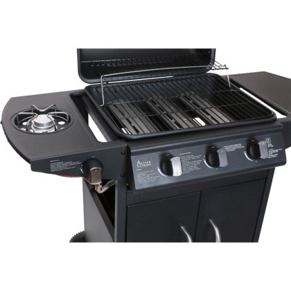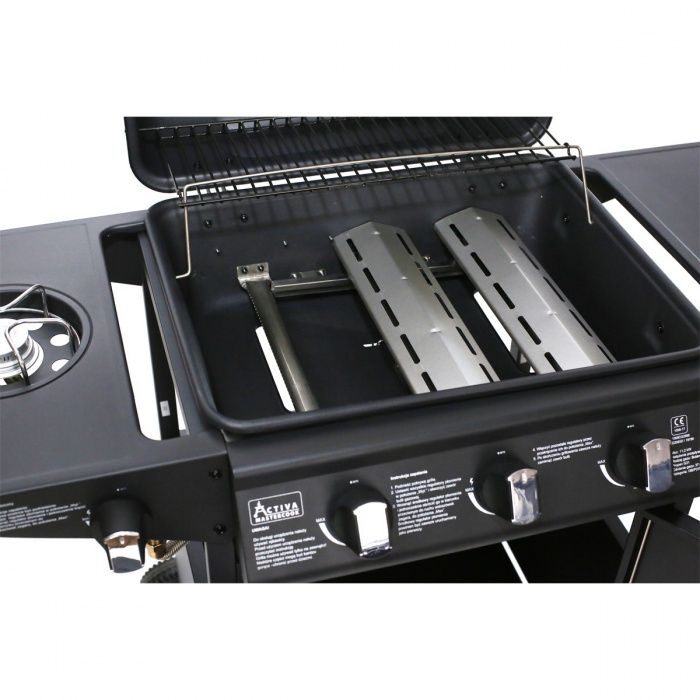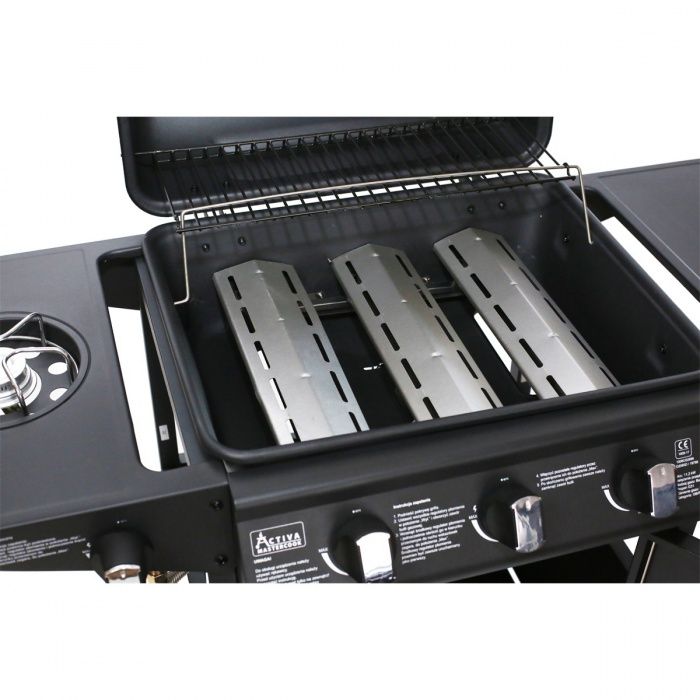 Praktický, kompaktní a cenově dostupný plynový gril ACTIVA CALIFORNIA se skvěle hodí pro menší a středně velké grilovací párty a rodinné oslavy. Dokáže najednou snadno obsloužit 8 až 10 osob. Německá společnost Activa tento gril vybavila vším potřebným pro zdravé a pohodlné grilování. Má tři výkonné ploché hořáky z nerezu, což má výrazný vliv na jejich životnost. Každý hořák má horní kryt a odtok, díky kterému je odkapávající tuk veden mimo plamen. Pokrm tak bude vždy zdravý bez zbytečných škodlivých prvků, které vznikají přepalováním tuku. Gril rovněž má praktický integrovaný boční vařič vhodný na přípravu omáček, horkých nápojů nebo příloh. Hořáky se pohodlně zapalují pomocí piezo zapalování integrovaném v každém z otočných knoflíků. Gril je dále vybaven kvalitním smaltovaným grilovacím roštem a dalším vyklápěcím roštem, který je vhodný na nepřímé grilování masa či zeleniny anebo na ohřívání již ugrilovaných pokrmů. Gril má kvalitně lakované víko s hliníkovým madlem a zabudovaným teploměrem, odkládací poličku na pravé straně a praktický odkládací prostor pod grilem, který je přístupný dvířky zepředu. Pro snadný transport je vybaven velkými kolečky. Na rozdíl od mnoha jiných grilů je již v základu vybaven vším potřebným pro připojení k plynové lahvi 5 nebo 10 kg.