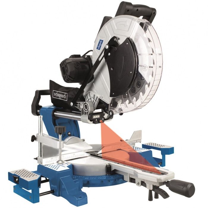 Pokosová pila SCHEPPACH HM 140 L s potahem, laserem a oboustranným nastavením náklonu. Druhý kotouč 48 zubů zdarma. Vysoké hodnoty prořezu.