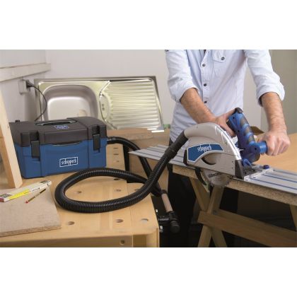Profesionální ponorné pily stojí zlomek toho, co nejlevnější formátovací pila, problém je v tom, že pro normálního uživatele je i cena kolem patnácti tisíc stále velmi vysoká. Společnost Scheppach přichází jako první na světě s velmi kvalitní ponornou pilou SCHEPPACH PL 55 za cenu běžné ruční okružní pily. Nyní může každý pracovat tak snadno a efektivně jako profesionál. Velmi zjednodušeně se dá ponorná pila popsat jako okružní pila, která může být přesně vedena na vodící liště. Celkově je ovšem celý systém pila-lišta daleko sofistikovanější a nabízí výrazně více možností a individuálních řešení. Na rozdíl od běžné okružní pily je ponorná pila, jak už název vypovídá, schopna pracovat s plynule nastavitelnou hloubkou řezu. Díky tomu můžete začít řez na kterémkoliv místě desky, můžete do ní bez problémů vyříznout otvor (ideální pro otvory pro umyvadlo či varnou desku), můžete bez problémů vyříznout parketu bez poškození povrchu pod ní atd. Ve spojení s vodící lištou potom dosáhnete přesného rovného řezu bez otřepů, můžete řezat pod přesnými úhly, můžete perfektně zarovnávat okraje, můžete zkracovat dveře, můžete rýhovat desky ap. Ponornou pilu můžete samozřejmě používat i bez vodící lišty jako úplně běžnou ruční okružní pilu. Pila PL 55 je výborně vybavená. Ergonomické držadlo je potaženo speciální měkkou protiskluzovou vrstvou, pila má integrovaný vývod na odsávání prachu, sklon pily můžeme nastavit v rozmezí 0° až 45°, hloubku řezu můžeme nastavovat plynule až do 55 mm a za kotoučem je integrován rozpěrný klín, který udržuje řeznou drážku otevřenou a brání tak nebezpečnému odmrštění pily při skřípnutí kotouče. Důležitá je také velmi chytrá konstrukce pily, díky které můžete provádět řezy těsně u zdi (pouhých 15,5 mm). Pilu můžete rovněž dovybavit širokou škálou příslušenství. PL 55 se dodává spolu s vodící lištou o délce 1400 mm. Ta zajišťuje dokonale rovné a bezpečné vedení pily a zároveň chrání obrobek před poškozením. Je vybavena gumovou lištou, díky které je řez čistý, bez zbytečných otřepů. Zespoda jsou umístěny adhezní proužky, zajišťující dobrou přilnavost i na hladkých materiálech.Pomocí spojovacího článku lze spojit několik lišt a provádět i velmi dlouhé řezy.