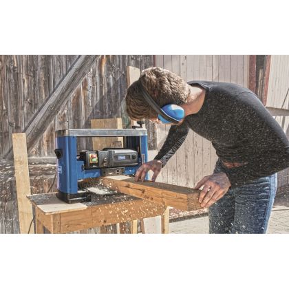 SCHEPPACH PLM 1800 je moderní výkonná protahovačka na dřevo. Chytrý kompaktní design minimalizuje prostorové nároky v dílně a usnadňuje transport stroje. Robustní konstrukce zvládá bez problémů práci s hranoly o šířce až 330 mm a výšce 152 mm. Silný motor 1500 W spolu se dvěma ocelovými noži rotujícími rychlostí 8500 ot./min. se starají o velmi čistý a přesný řez, což v praxi znamená ještě jemnější opracování plochy. O posun dřeva se stará robustní mechanismus s rychlostí pojezdu 7,4 m/min. Nože jdou velice snadno vyměnit a celé ovládání stroje je velmi jednoduché a komfortní. Výšku nastavíte jednoduše pomocí optické stupnice a otočného ovladače na horní straně protahovačky. Na přesnosti opracování se podílí i velmi kvalitní ocelový hoblovací stůl s možností prodloužení. Samozřejmostí jsou i transportní madla a prachuodolný bezpečnostní spínač. Stroj získal mnoho prestižních ocenění, jako například vítěz kategorie nejlepší nákup ve World Tools Awards.