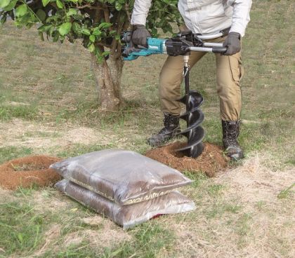 Spolehlivý aku půdní vrták fungující na 2 akumulátory Li-ion 18V