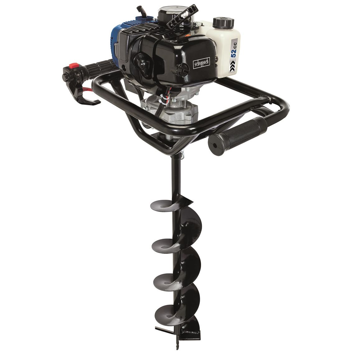 Pokud chcete postavit plot, ohradu, základy pro zahradní domek nebo třeba vysázet větší množství stromků, můžete si velmi usnadnit práci použitím půdního vrtáku. Není problém zkrátit dobu hloubení děr až o 80% a ušetřit si tak i spoustu zbytečného úsilí. Správný nástroj by pro Vás mohl být model SCHEPPACH EB 2000. Regulace otáček i vypínač jsou pohromadě na pravé rukojeti a spolu s příznivou hmotností dělají stroj velmi pohodlný na ovládání. K tomu přispívá i moderní centrální uložení motoru uprostřed rámu. Stroj je tak výborně vyvážen a i při vyšších otáčkách se ovládá mnohem lépe, než starší konstrukce s motorem uloženým excentricky mimo rám. Robustní rám chrání nejenom Vás, ale i stroj samotný při jeho položení na zem. Srdcem stroje je silný motor s odstředivou spojkou a elektronickým zapalováním pro snadné starty a dostatečně objemnou nádrží. Má membránový karburátor, takže z něj nevyteče palivo ani při sebevětším náklonu.