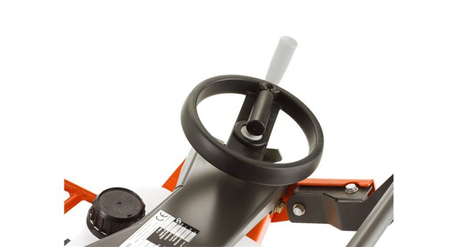 Sklápěcí ruční kolo - ruční kolečko lze při přemísťování stroje sklopit, a tak zabránit poškození.