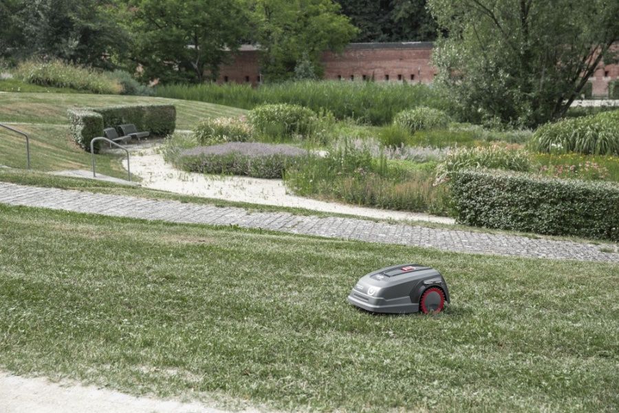 Zcela automatické sekání ploch do maximální velikosti 2000 m². Velmi nízká hlučnost 60 dB(A).