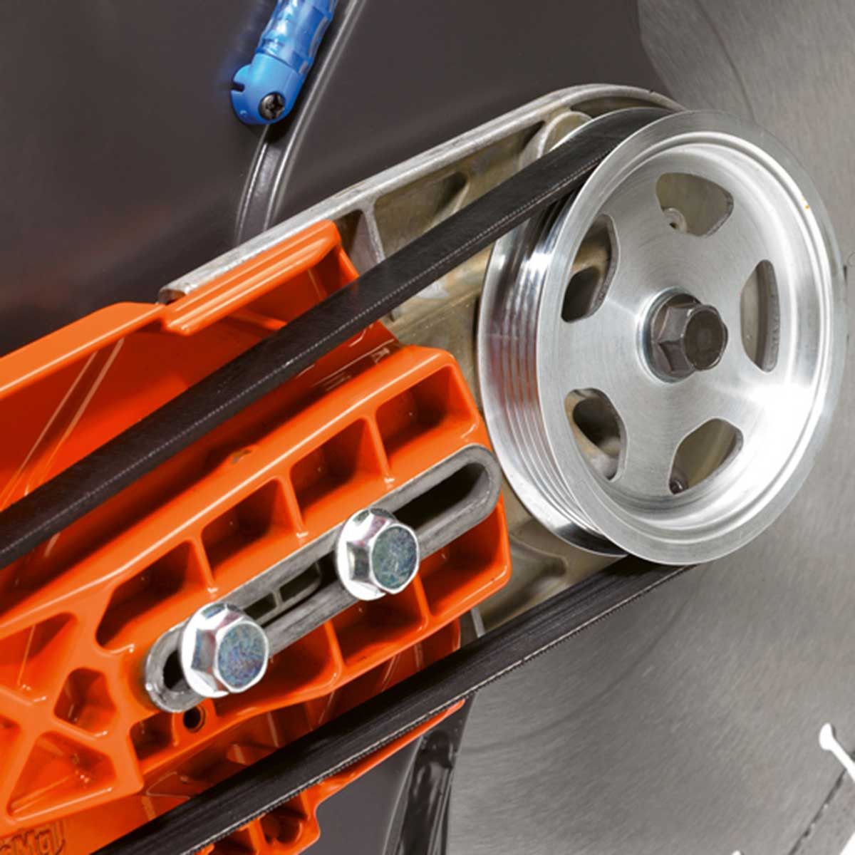 Snížené opotřebení: díky hnacímu řemenu s plně utěsněnou převodovkou pro zamezení průniku prachu vznikajícího při řezání.