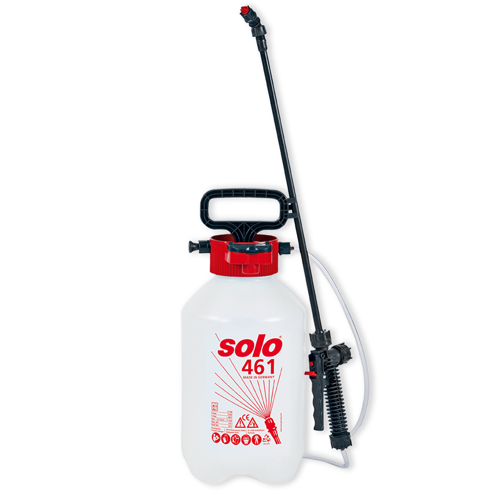 Ruční postřikovač SOLO 461 Comfort je vhodný pro ošetřování rostlin a různé dezinfekční práce. Postřiková kapalina se tlakuje v nádrži pístovým čerpadlem. Po natlakování je možné zavěsit postřikovač na popruh přes rameno. Popruh je součástí dodávky. Spuštění postřiku se ovládá ventilem v rukojeti. Páka je vybavená aretací pro trvalý provoz. Ze sériové výroby je postřikovač osazený štěrbinovou tryskou pro plošný postřik. V dodávce je dále tryska pro kruhový postřik (dutý kužel). Postřikovač je možné doplnit celou řadou příslušenství - prodlužovací trubky, teleskopické trubky, kryty postřiku, tvary trysek - které usnadňuje a rozšiřuje jeho možnosti použití.