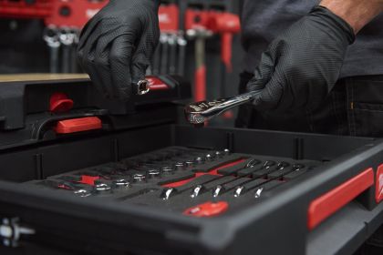 Pevné a odolné jednorázové nitrilové rukavice o tloušťce 0,2 milimetru a hmotnosti 8,0 gramů, které snižují riziko roztržení a poškození a zvyšují produktivitu.