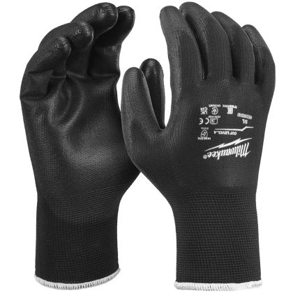 Univerzální rukavice  MILWAUKEE , velikost 8/M, balení 12 ks, lehké a tenké s dlaní potaženou polyuretanem, ideální pro všeobecné stavební práce, montážní práce, manipulaci s materiálem, tesařské a renovační práce.