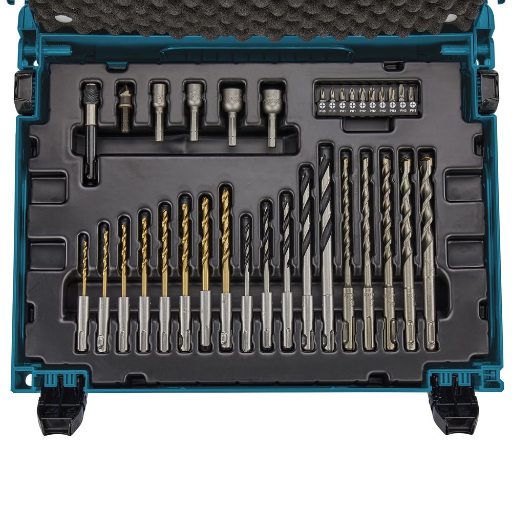 Sada bitů a vrtáků s upínáním SDS-Plus MAKITA B-69478, balení 65 ks, v kufru MAKITA Makpac.