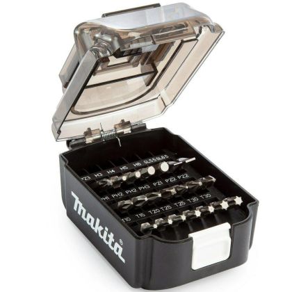 Sada bitů MAKITA B-68323, 21 ks, délka 50 mm, v plastové krabičce tvaru baterie.