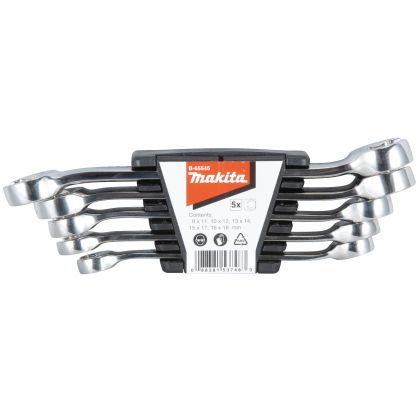 Sada 5 ks vidlicových klíčů MAKITA B-65545  na šestihranné matice o velikostech 9x11, 10x12, 13x14, 15x17 a 16x18 mm.