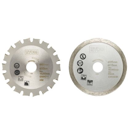 Pro Ryobi ONE+™ R18MMS-0. Průměr vřetena 15mm a průměr kotouče 85mm se hodí pro konkurenční pily na více materiálů.
