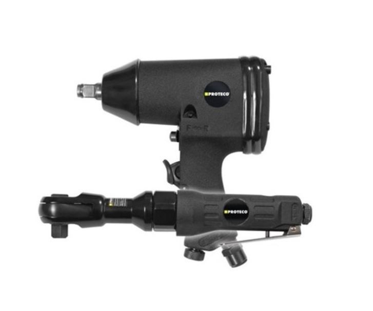 Sada pneu utahováků PROTECO 1/2" , ráčnový 81 Nm + pistolový 312 Nm, max. tlak 8 bar, spotřeba vzduchu 115/145 l/min, hmotnost 3,4 kg.