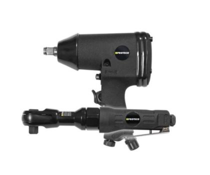 Pneumatický utahovák PROTECO je určen k utahování a povolování matic a šroubů. Maximální utahovací moment pistole je 312 Nm. Pneumatická ráčna je určena pro šroubování matic a šroubů zejména v hůře přístupných místech. Maximální utahovací moment ráčny je 81 Nm. Připojení pneumatického utahováku ke kompresoru se provádí přes rychlospojku s možností využití přimazávače, který je součástí balení. Připojení pneumatického utahováku i pneumatické ráčny ke kompresoru se provádí velmi jednoduše přes rychlospojku s možností využití přimazávače, jež je součástí balení.