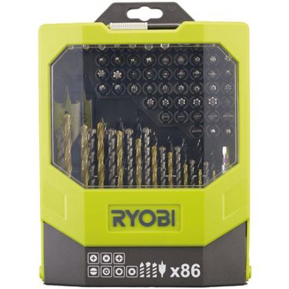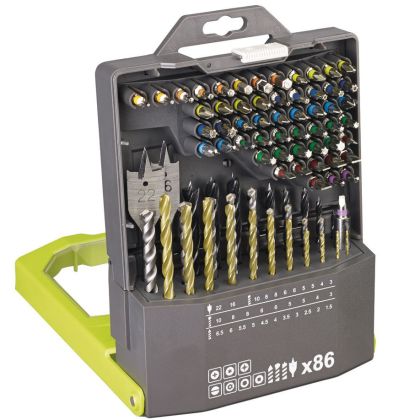 Sada vrtacích a šroubovacích bitů  RYOBI RAK86MIXC , 86 ks, ideální pro šroubování a vrtání do kovů, plastů a zdiva.