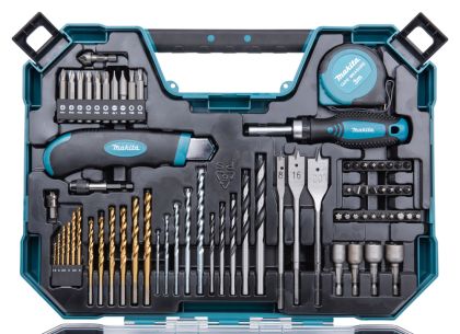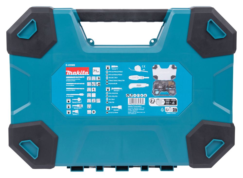 Sada vrtáků a příslušenství MAKITA E-22589, 71 ks, dodáváno v plastovém kufru.