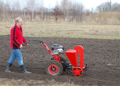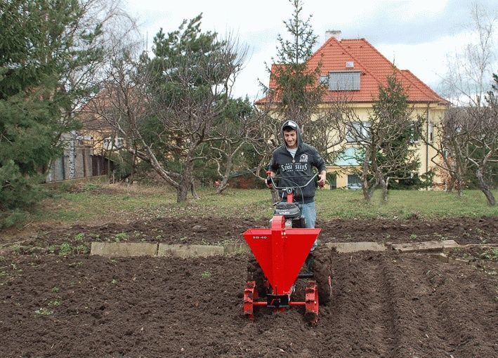 Sazeč brambor SB-40 je vybaven rozhrnovací radlicí, sázecím miskovým mechanizmem na řetězu a nově zahrnovacími disky. Radlička i disky jsou výškově stavitelné, lze si tak nastavit hloubku sázení i výšku hrobek. Nastavit lze též úhel zahrnovacích disků dle typu půdy. Sazeč se připojuje před jednoosý malotraktor do závěsného zařízení BZN-002.