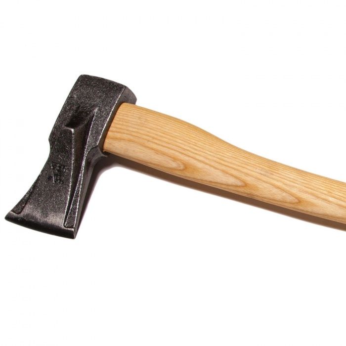 Ručně kovaná štípací sekera KRUMPHOLZ, hmotnost 1100 g, násada z jasanového dřeva, délka 60 cm, lakovaný kov i násada, čepel tvarovaná do štípacího klínu.