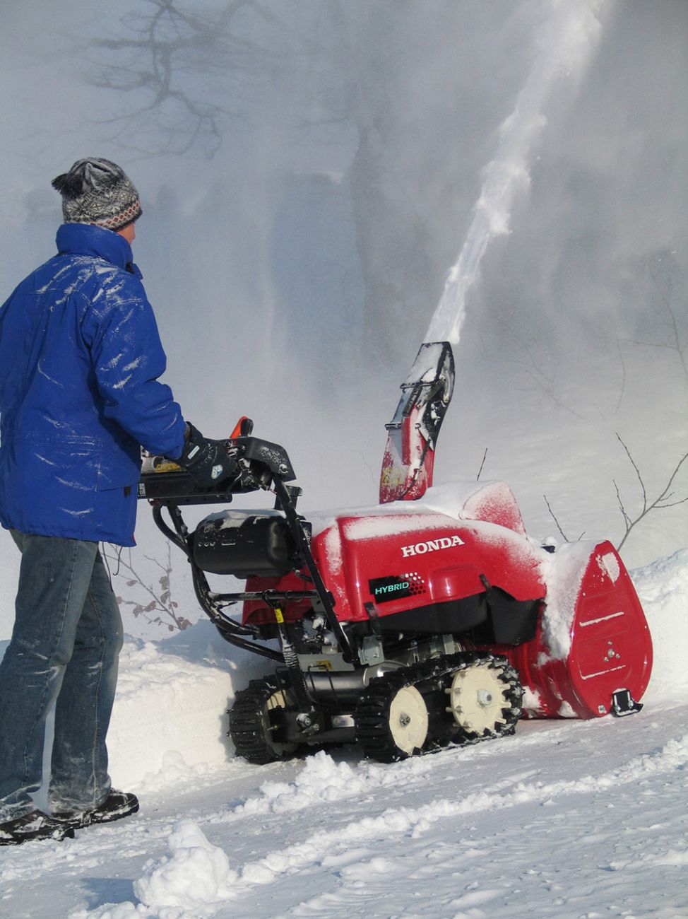 Hybridní pohon spočívá v kombinaci spalovacího motoru s elektrickým pojezdem. Motor Honda GXV 390 s přehledem plní poměrně přísnou emisní normu EURO 5, disponuje elektronickou řídící jednotkou s automatickou regulací otáček v závislosti na zvoleném pracovním režimu. Tím, že jeho hlavní zátěží je přímý náhon 81 cm širokého frézovacího mechanizmu, má ohromnou rezervu výkonu na to, aby hravě zvládl zpracovat a odhodit až 60 tun sněhu za hodinu do vzdálenosti až 17 m. Samotný bunkr je dostatečně robustní a pevný tak, aby nebyl deformován působením ohromné síly sněhové vrstvy mnohdy převyšující i samotnou výšku frézovacího mechanizmu. Je vyroben z odolné oceli, schopné odolávat i abrazivnímu a chemicky agresivnímu materiálu, který je většinou součástí sněhové vrstvy hlavně v blízkosti silnic a komunikací. Nově tvarovaný komín výhozu s elektrickým ovládáním značně zvýšil komfort ovládání směru odhozu sněhu. Plynulé nastavení výšky frézování je zde samozřejmostí. Do závěje frézu posouvají pojezdové pásy, které mají vynikající trakční schopnost a výbornou prostupnost terénem, dobře drží stopu při úklidu sněhu ve svahu, nepoškozují povrch a stroj je pořád dostatečně obratný pro to, aby se mohl pohybovat i na méně přístupných a menších místech nebo v blízkosti zaparkovaných automobilů. Rychlost pojezdu jak vpřed, tak i vzad se ovládá pákou na ovládacím panelu naprosto plynule bez výkyvů rychlosti jízdy. Díky unikátní technice fréza disponuje možností otáčení na místě (pásy jdou proti sobě) a pojíždění lze provádět bez nastartovaného motoru – pouze na baterie. Z garáže vyjedete pouze na elektropohon naprosto nehlučně a až na místě frézování nastartujete motor otočením klíčku zapalování jako v automobilu. Komfort ovládání je na maximální možné míře pomocí rozměrných ovladačů a tlačítek, přehledně uspořádaných na ovládacím pultu stroje tak, aby bylo možné je obsluhovat i v rukavicích. Ideální "mašina" pro majitele soukromých horských chat, penzionů, rodinných domů a menších parkovišť u lyžařských areálů kteří potřebují spolehlivě a rychle odklízet velké množství sněhu. Ovládání je velmi snadné, naprosto fyzicky nenáročné a velmi komfortní.