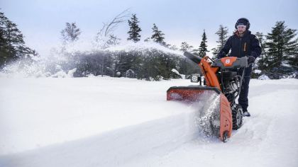 HUSQVARNA ST 330 je určena pro majitele pozemků, kteří potřebují vysoce kapacitní, robustní a odolnou sněhovou frézu, která pohodlně vyčistí velké plochy. ST330 je navržena pro časté použití ve všech sněhových podmínkách pro odklízení všech druhů sněhu o výšce 15-60 cm. Dvoustupňový systém, převodovka s třecím diskem, posilovač řízení, vysokokapacitní pásový systém a extra velké pneumatiky zajišťují snadný provoz. Sněhová fréza je vyrobena z vysoce odolných komponentů, jako jsou např. robustní kryt šneku s pevnou vzpěrou pro lepší odolnost šneku, litinová převodovka a litinové oběžné kolo. Pro vynikající ergonomii je oblouková rukojeť výškově nastavitelná, s vyhřívanými madly. LED světla a elektrický startér usnadňují práci i v náročných klimatických podmínkách.