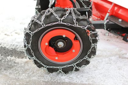 Sněhové řetězy VARI pro tažnou nápravu TN-GLOBAL. Sněhové řetězy pro malotraktory VARI jsou velkým pomocníkem nejen v zimě na sněhu, ale také např. v lese na měkké půdě.