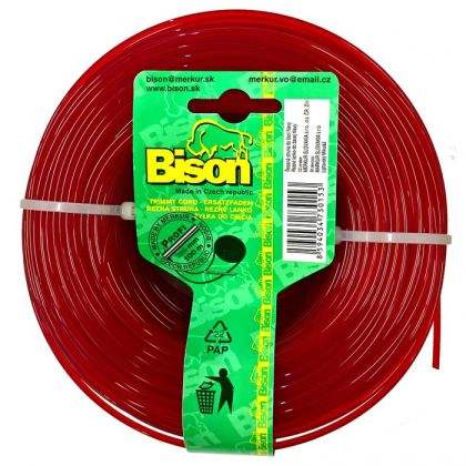 BISON PROFI je profesionální struna kruhového průřezu, vyrobená z tvrzeného nylonu "kopolyamidu 6/12", materiálu s trvanlivostí vysoko prevyšující prodávané silonové a standartní nylonové struny na našem trhu. Kruhový profil je vhodný na kosení všech porostů, zvlášť na sekání zeleně při plotech a zídkách.