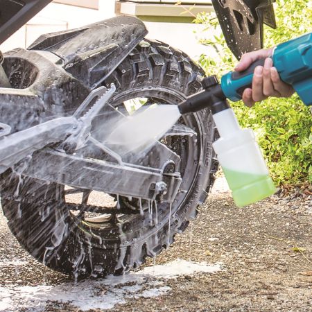 Tryska na saponát s nádobou pro MAKITA DHW180. Používá se k automatickému přimíchávání saponátu. Vzniklé bubliny snadněji přilnou k nečistotám pro snadné čištění.