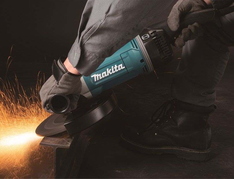 Úhlová bruska s elektronikou  MAKITA GA9070X1 , příkon 2800 W, otáčky 6600 min-1, kotouč 230 mm, 6,3 kg.