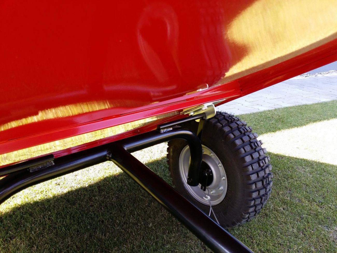 Vozík VARES HV 220S , nosnost vozíku 300 kg, rozměr korby 127x95x30 cm, kola 145x70-8, ložiska, provozní a parkovací brzda, sklápěcí korba, bez závěsu. Sada odrazek jako bonus.