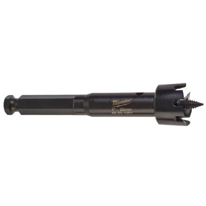 Samořezný vrták na dřevo  MILWAUKEE , ⌀ 25 mm, upnutí 7/16" Hex, vnitřní řezné ostří piluje rádius otvoru a vytváří tak čisté, hladké otvory bez přítlaku.
