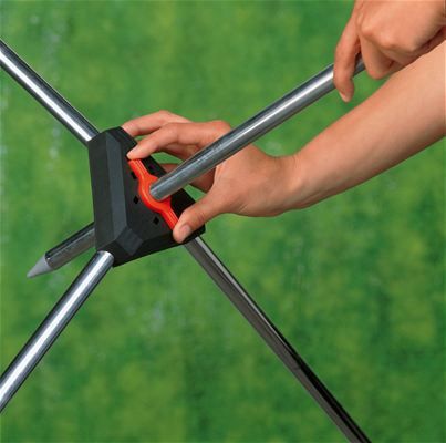 Sprchování pomocí zahradní sprchy trio se stativem od společnosti GARDENA je stejně pohodlné jako ve vaší koupelně. Díky trojnožce lze sprchu snadno nainstalovat kdekoli. Flexibilní a snímatelná sprchová hlava připojená k 1,3m hadici přináší větší svobodu při sprchování na zahradě. Má dva tvary stříkání: vějířové měkké stříkání pro sprchování nebo mžení pro jemné osvěžení. Výšku lze libovolně nastavit jednoduchým tlačítkem. Díky tomu lze trysku ideálně nastavit pro každou velikost postavy. Regulační a uzavírací ventil zajišťuje regulaci a nastavení požadovaného průtoku vody.