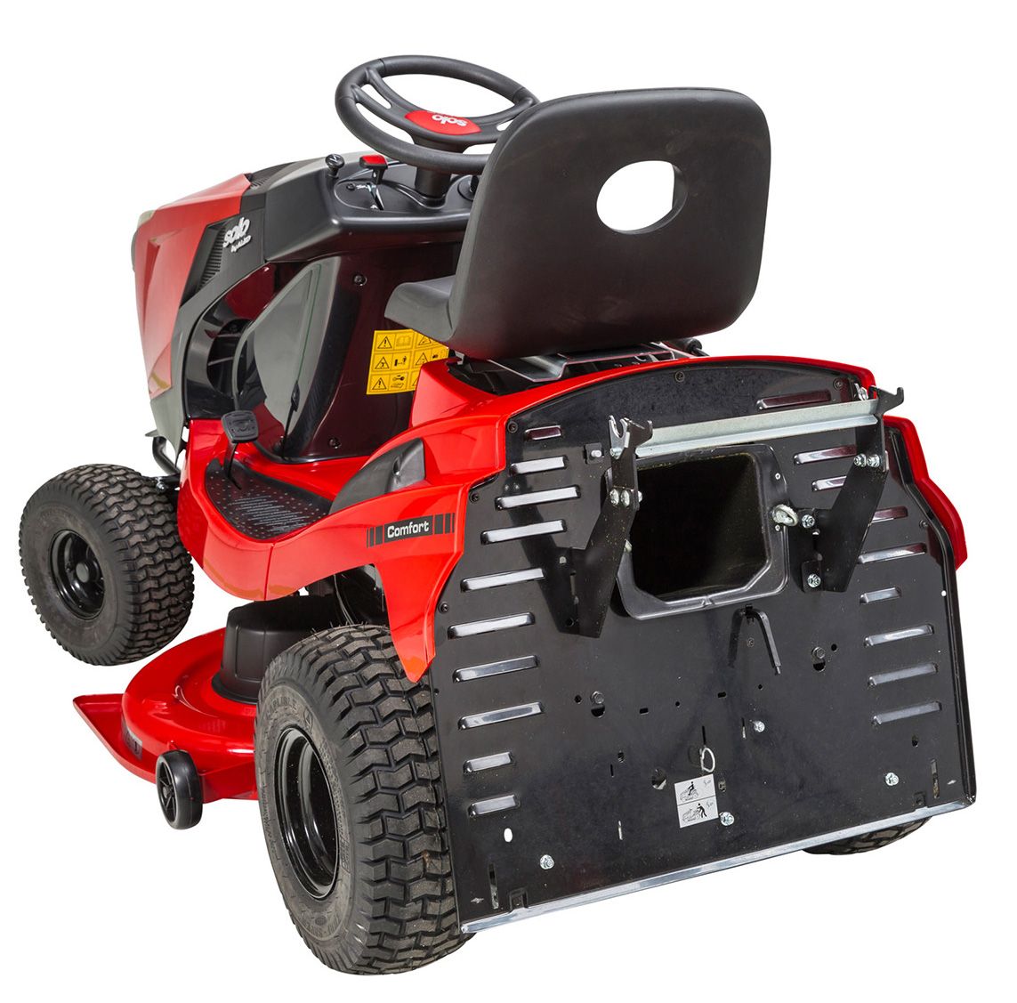 Nová generace zahradních traktorů Comfort PRO září v novém lesku díky nové kapotě v inovativním designu. Kvalita a dlouhá životnost jsou u tohoto produktu zaručeny díky klíčovým cílům „engineered in Germany“ a „made in Austria“. Efektivní sečení s vylepšenou ergonomií Sekejte efektivně díky technologii MaxAirflow, která umožňuje lepší transport posekané trávy do sběrného koše. To znamená, že sběrný koš se musí méně vyprazdňovat. Teleskopickou páku pro vyprazdňování koše lze posunutím výškového nastavení do strany zasunout úplně dolů. Tím se koš zcela vyprázdní.